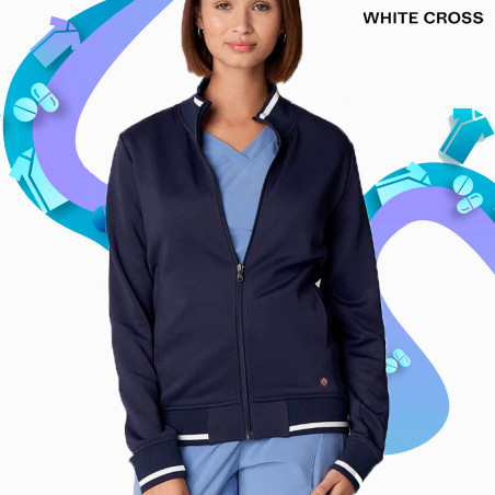 Chamarra White Cross, su tela combina elasticidad y resistencia a la decoloración. Manténte cómoda y con estilo en todo momento.
