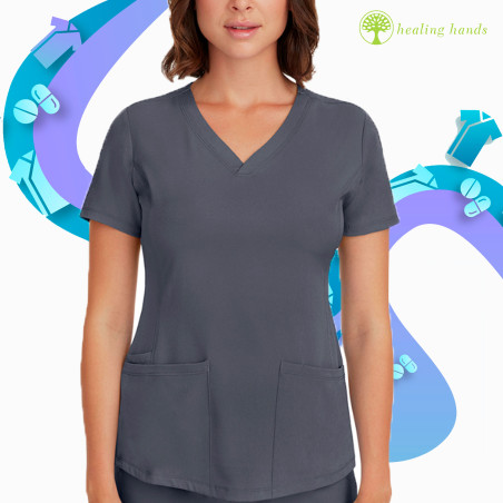 Pijama Healing Hands, suavidad y elasticidad. Mantente ligera, fresca y con estilo. Filipina cuello en V, con bolsillos frontales, pantalón tipo jogger con varios bolsillos.